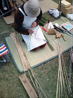 うたよさんによる、竹のすだれ作り、実演と体験。