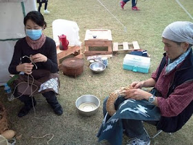 うたよさんによる、竹のすだれ作り、実演と体験。