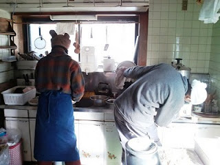 お蕎麦をゆでているところ。うたよさんの帽子がかわいい。