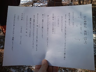今日は山の神の日で、一期会のみんなで祭事を行った。