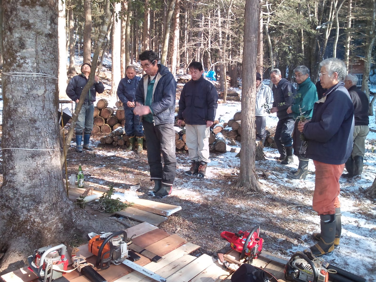 ソヨゴを採ってきて祭壇をつくり、山の神に「此処に集いし者どもの安全と健康を此の木の元にお守りくださいますようお願い」する。