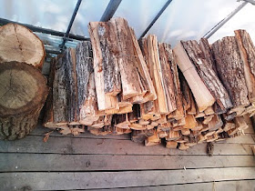 ぐるぐるの熱源の多くを薪に頼っている。