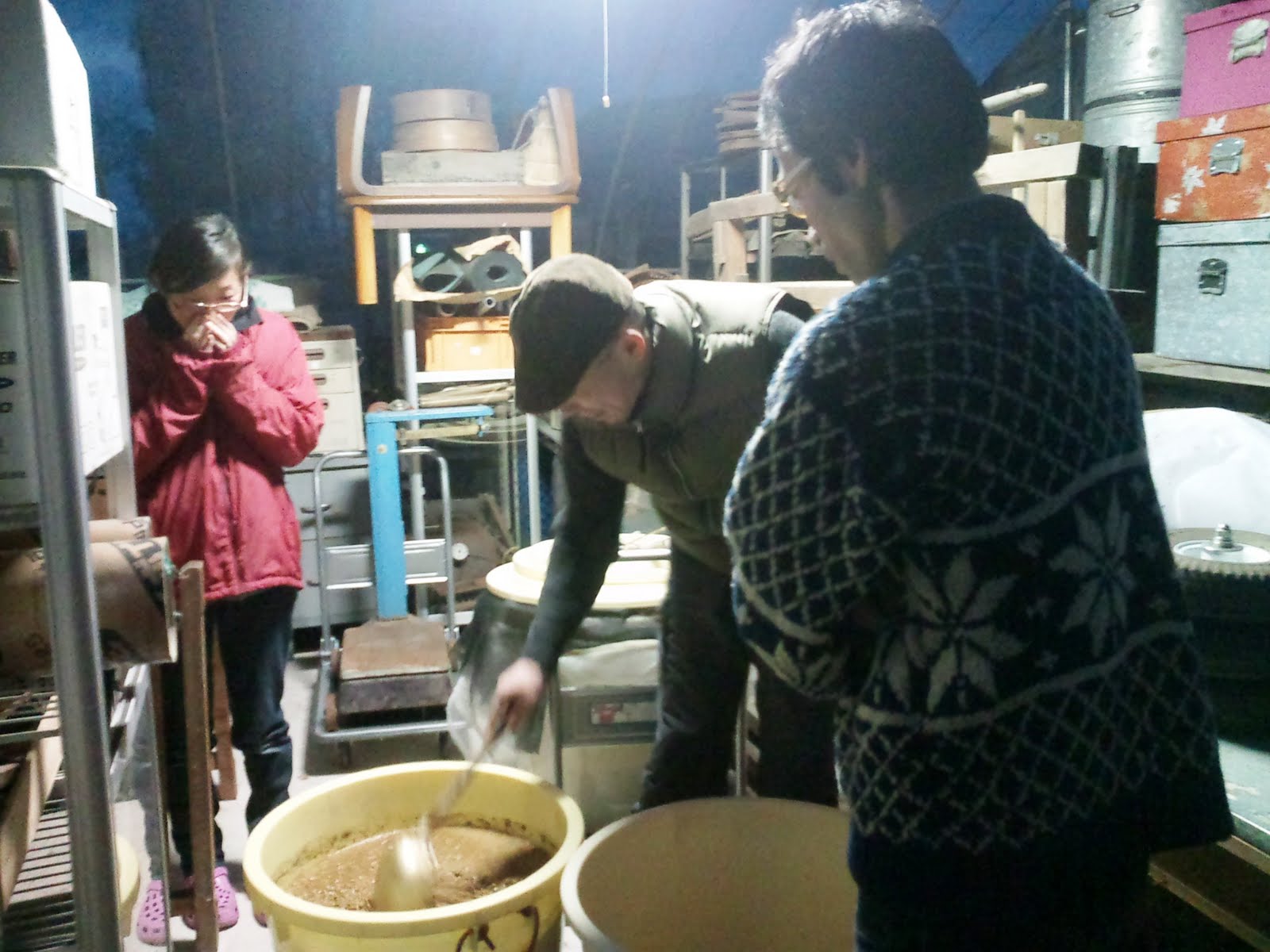 「どうですか~」と声をかけながら、3日目まではかき混ぜて、4日目の今日、天地返しです。
