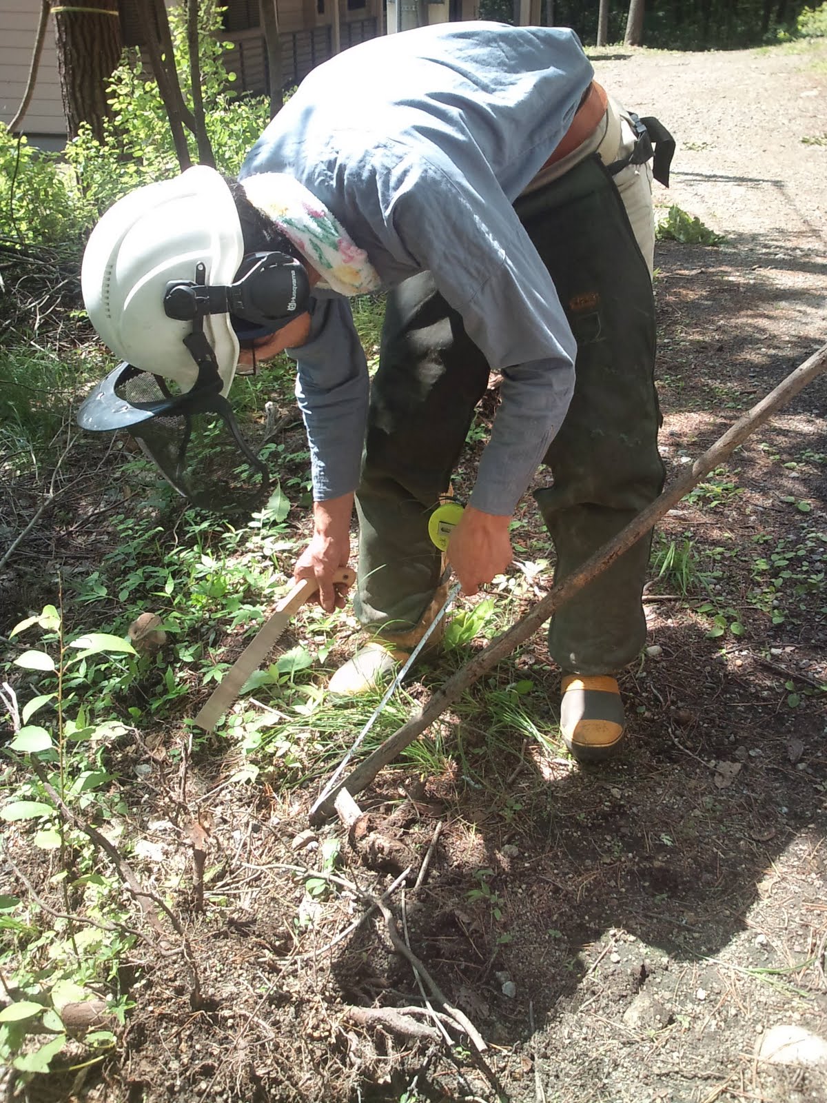 まずは適当な棒で尺棒をつくって、玉切る長さがわかるように物差しをつくります。