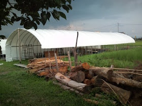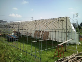 作業場としてビニールハウスを建てていましたが、このほどやっとビニールをかけてちょっとした作業ができるようになりました。