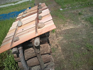板屋根なので石も置いて、細かいディテールにも凝ってみました。