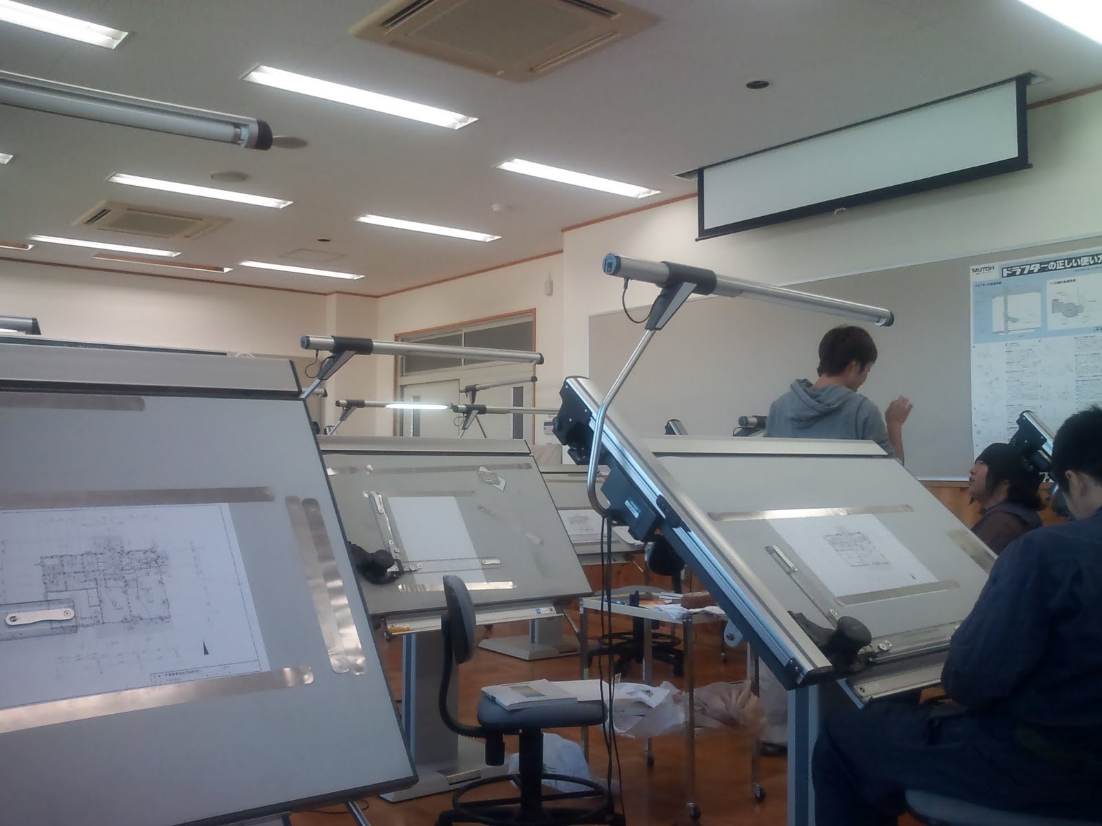 今日の授業は製図でした。しばらく午前中は、製図が続きます。