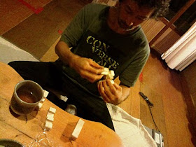 前に学校で作った6本組み手のパズルですが、家でばらしたら、どうやっても戻らなくなってしまい、しんさんに助けてもらおうと持ってきたのですが…。