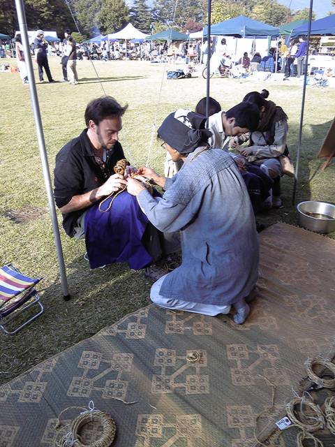 約1時間の釜敷き作りは結構疲れます。ちゃぶ台のところで休憩していってもらいました。