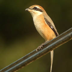 モズはもう少し小さく、くちばしが太くまがっていて、羽の色も違います。目の周りが黒いのが特徴です。