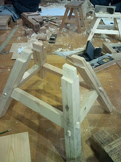 屋根の勾配の取り方の練習にちょうどいいということで、今学校で四方転びの椅子をつくっています。