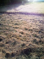 蜘蛛の巣にも露が付いて形がくっきりと見えます。
