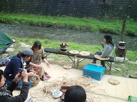 切った竹は枝葉をおとして、近くのむすび屋さんに置きました。