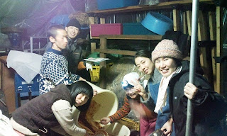 12月5日は8時に集まって、一日かけて丸大豆麹の「まるこ」を搾ります。「まるこ」は従来通りに搾り師さんに来てもらい、全量瓶詰めをします。