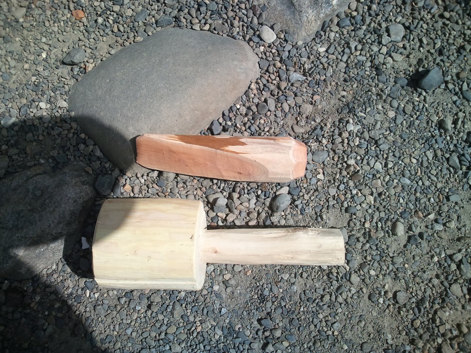 講師の一人が作ってきたクサビとクサビを打ち込む木槌。
