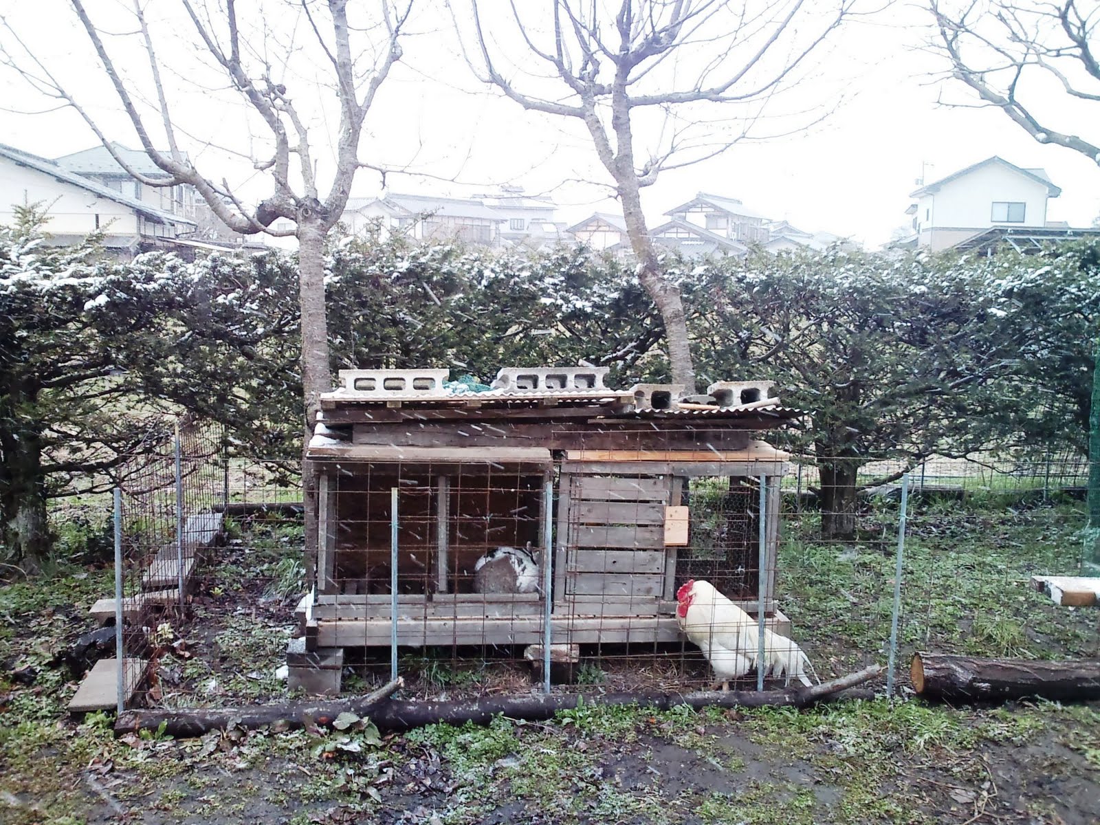 以前、雌鶏2号をキツネにさらわれた時は、1日中鳴き続けていたものだったが、あれから4年の歳月がたった今は、鳴く元気もなく、じっと耐える毎日のようだ。