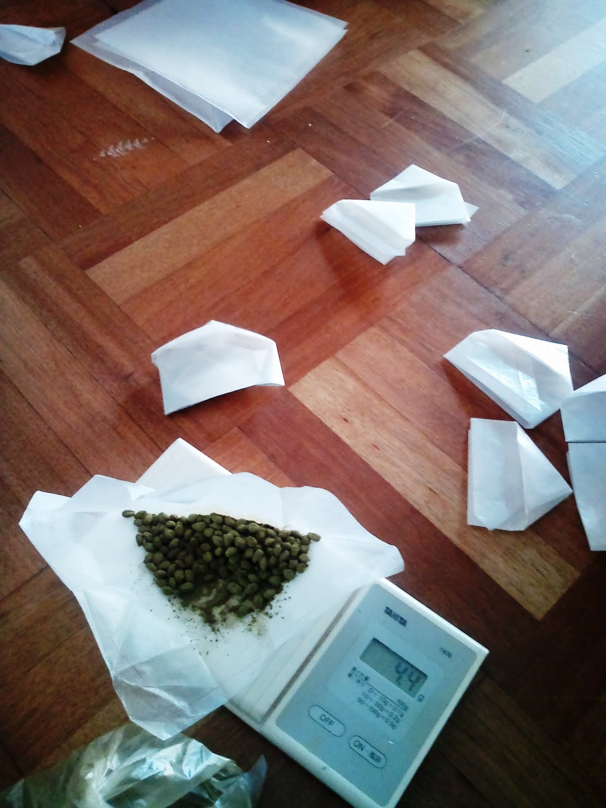 大豆を蒸かしている間に、種もやしを室蓋の数に均等分けします。