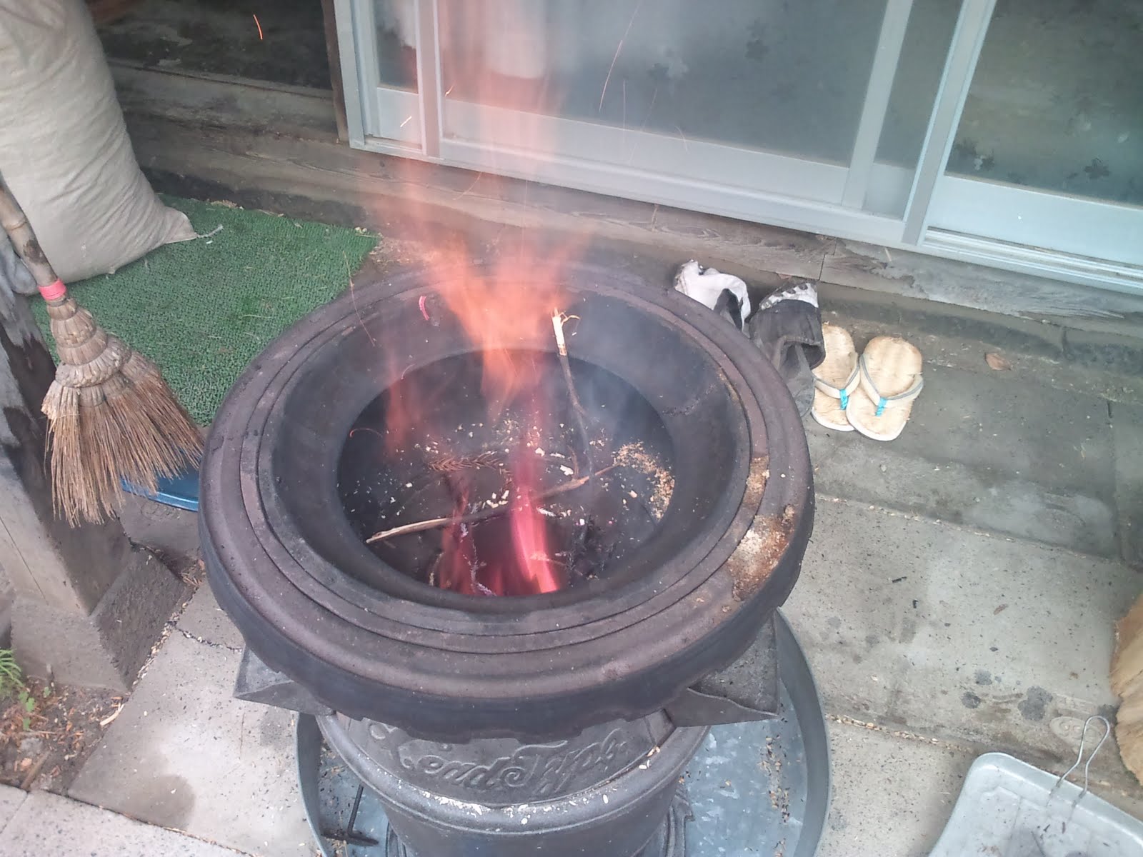 もみ殻のように、ガスが発生して燃えるのではなく、鉋くずそのものが、メラメラと燃えて火柱が立ち、大変危険でした。なんでも代わりになるというものではないようです。