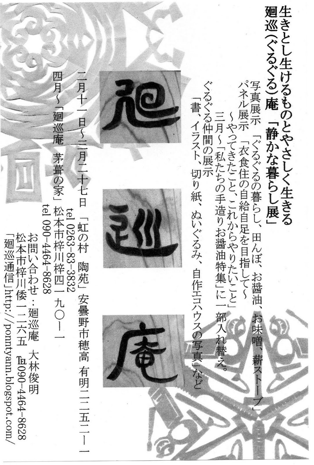 ぐるぐる庵では静かな暮らしをベースにそこで得たものをみんなと分かち合い、共有していきたいと思っています。よろしくお願いします。