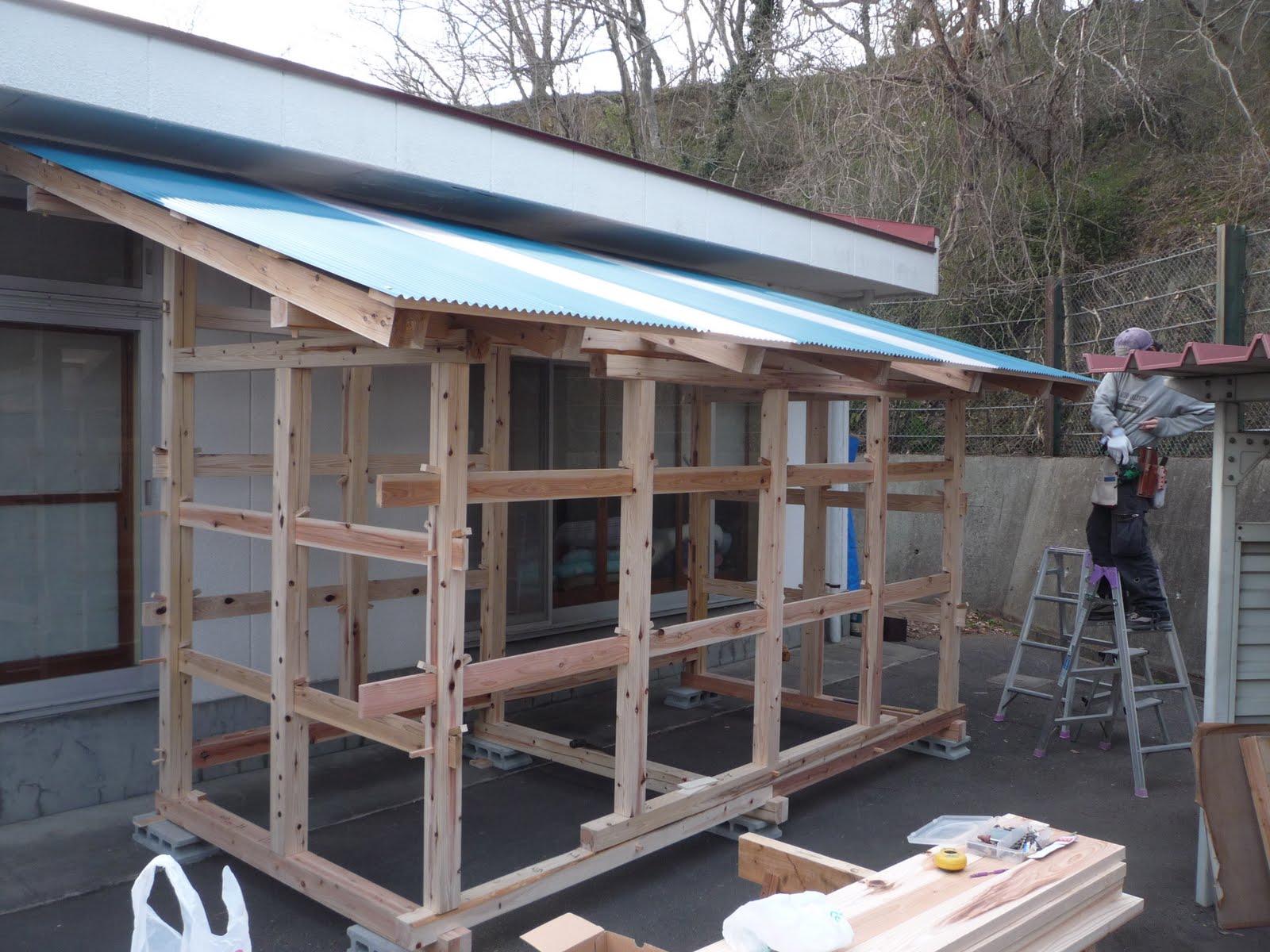 お昼過ぎから半日で、屋根かけまで完成。とても順調。