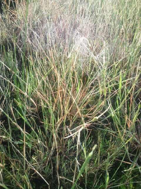 蜘蛛の巣にも露が付いて形がくっきりと見えます。