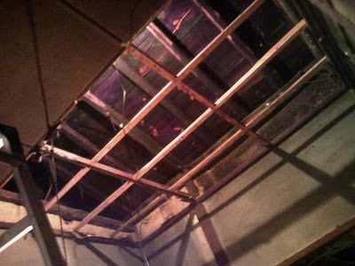 石膏ボードを取ると、オリジナルの屋根裏が現れました。煤でいい感じにすすけています。